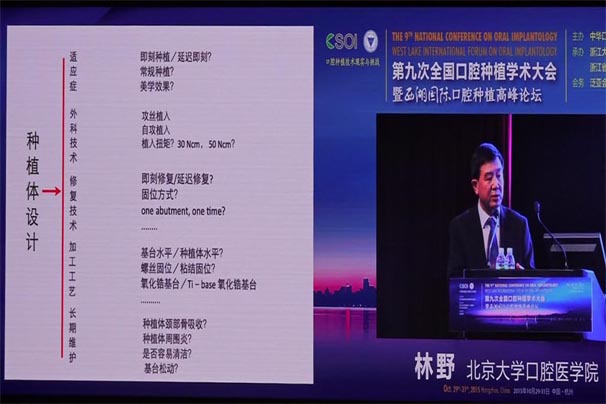 會(huì)議期間國(guó)內(nèi)知名口腔專家針對(duì)當(dāng)前口腔種植領(lǐng)域熱點(diǎn)進(jìn)行了精彩的學(xué)術(shù)演講。其中北京大學(xué)口腔醫(yī)學(xué)院林野教授的演講主題是“種植體設(shè)計(jì)及臨床意義”。